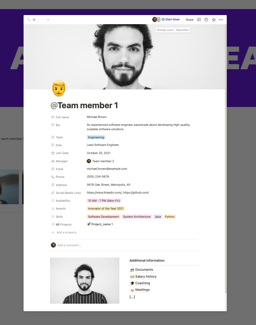 Overview: This free Notion Template offers a space where teams can enjoy the productivity and efficiency that come from using it. This template is equipped with: teammate profiles, project sections, and our powerful board page for managing tasks. Our team metrics also provide insights to refine strategies and boost performance.